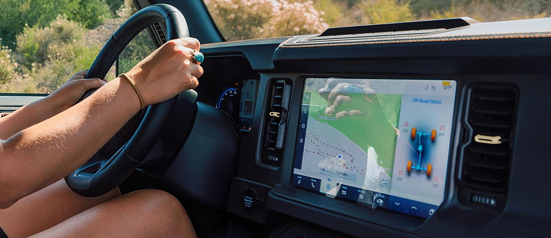 Inside the 2026 Ford Bronco, you'll find a spacious and well-appointed cabin with the latest technology. The SYNC® 4 infotainment system includes a large 12-inch touchscreen, wireless connectivity, and enhanced voice recognition. Enjoy your music with the available 12-speaker B&O® Sound System by Bang & Olufsen®.